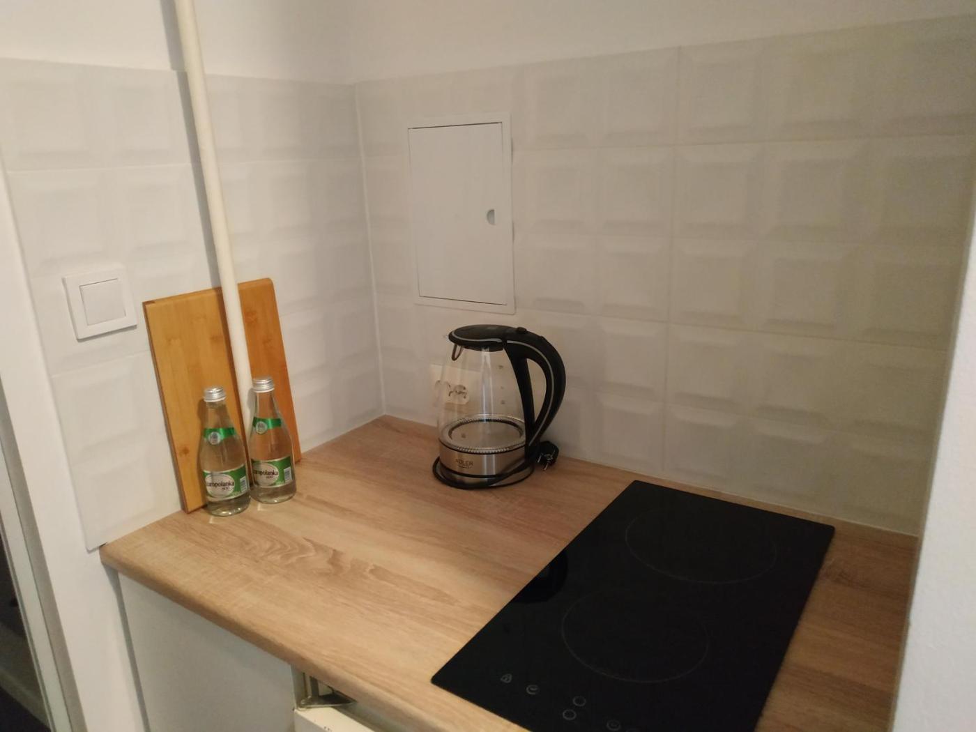 Apartament. The apartment features a private bathroom fitted with a bath and a hairdryer. A kitchenette equipped with a stovetop, a refrigerator and kitchenware is available for cooking and storing food. The apartment offers a seating area, an electric kettle, a sofa, a flat-screen TV with cable channels, as well as city views. The unit offers 1 bed. Apartament - 3 osobowy. Powierzchnia pokoju ok.: 15 mkw.